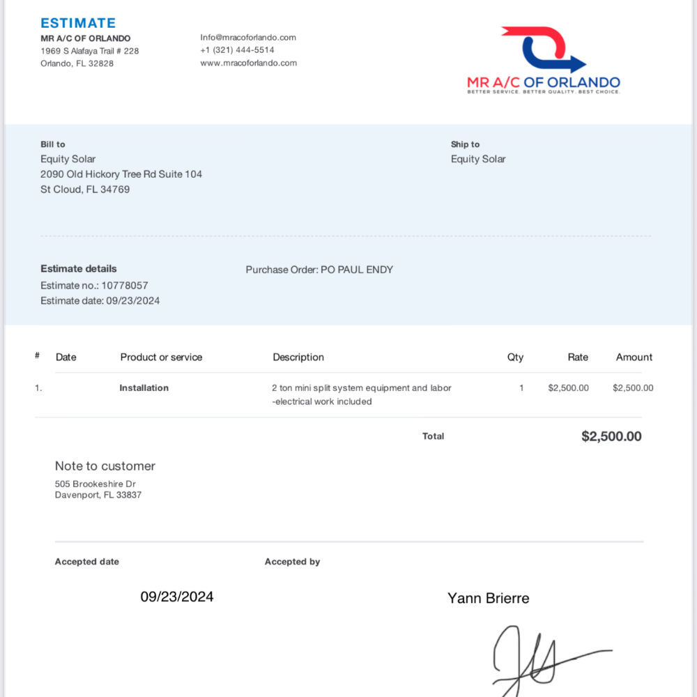 They installed the solar panels and AC unit at my property and left a lot of messβdebris and trash all around my home that I had to clean myself. To make matters worse, the contractor they hired to install the AC was never paid. As a result, the necessary permit documents were never submitted to the city. Now, Iβm stuck with a $2,500 bill and a citation notice posted in front of my house. No one is taking responsibility for the payment or the legal consequences.